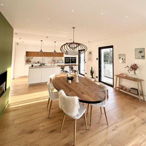 Chaque luminaire naît d’un arbre prélevé en Europe dans des forêts gérées durablement. Nos lames sont inspectées avec soin, poncées à la main pour révéler une texture douce et parfaitement lisse. Selon la finition, une huile naturelle vient sublimer son aspect et le protéger. Ce travail minutieux garantit un bois authentique et durable, l’essence même de notre exigence artisanale.